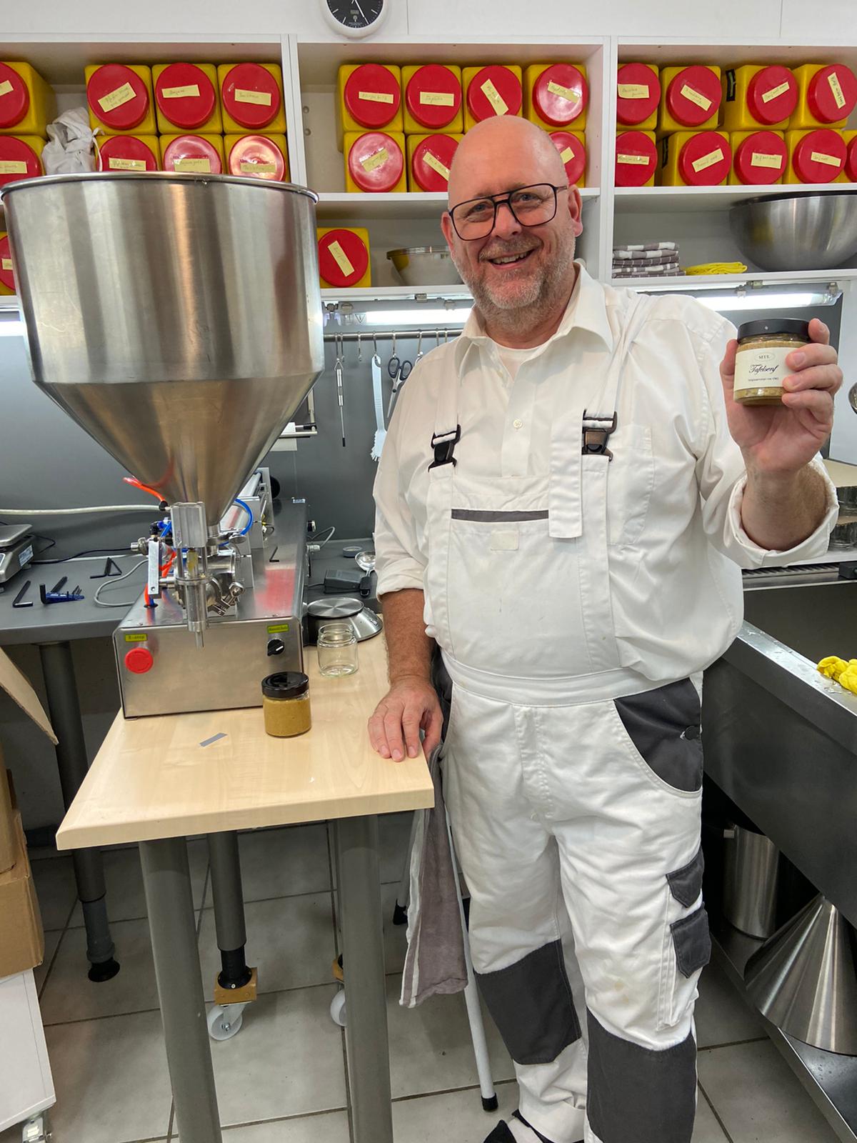 Unser Senf wird nach traditionellem Rezept und in heimischer Handarbeit verarbeitet und abgefüllt. Unser Senf ist dadurch 100% Made in Germany und besticht durch seine besondere körnige Konsistenz, was ihn besonders von einem herkömmlichen Tubensenf unterscheidet.