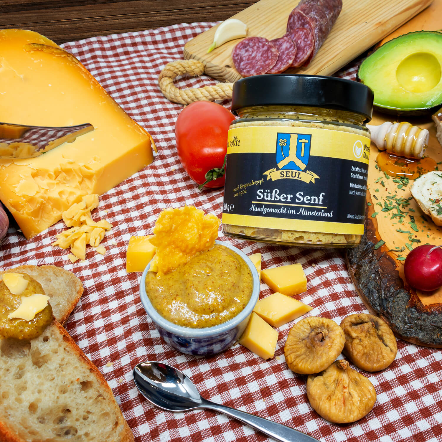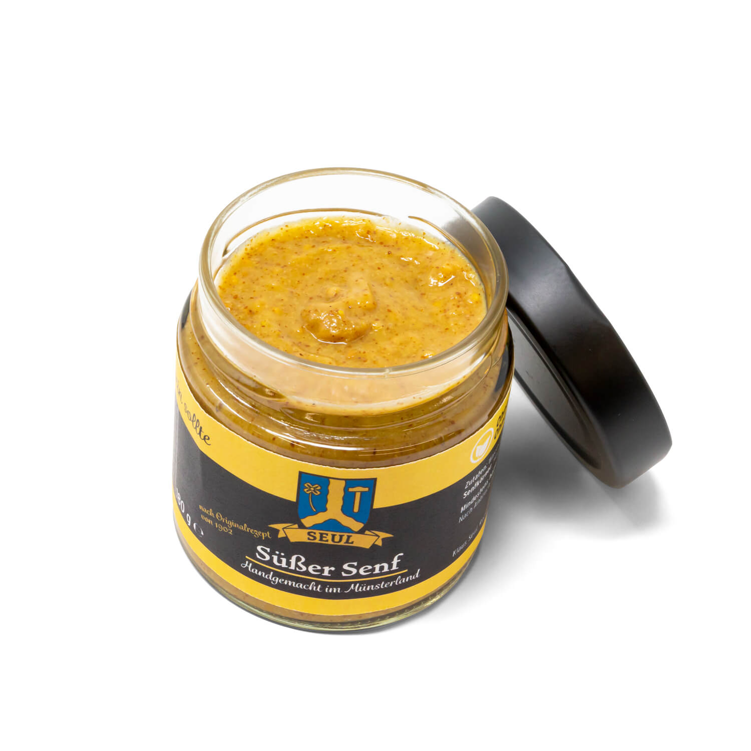 Seul Feinkost – Tradition und Qualität, die man schmeckt. Probieren Sie unseren Süßen Senf mit Honig und erleben Sie die besondere Verbindung von Würze und Süße!